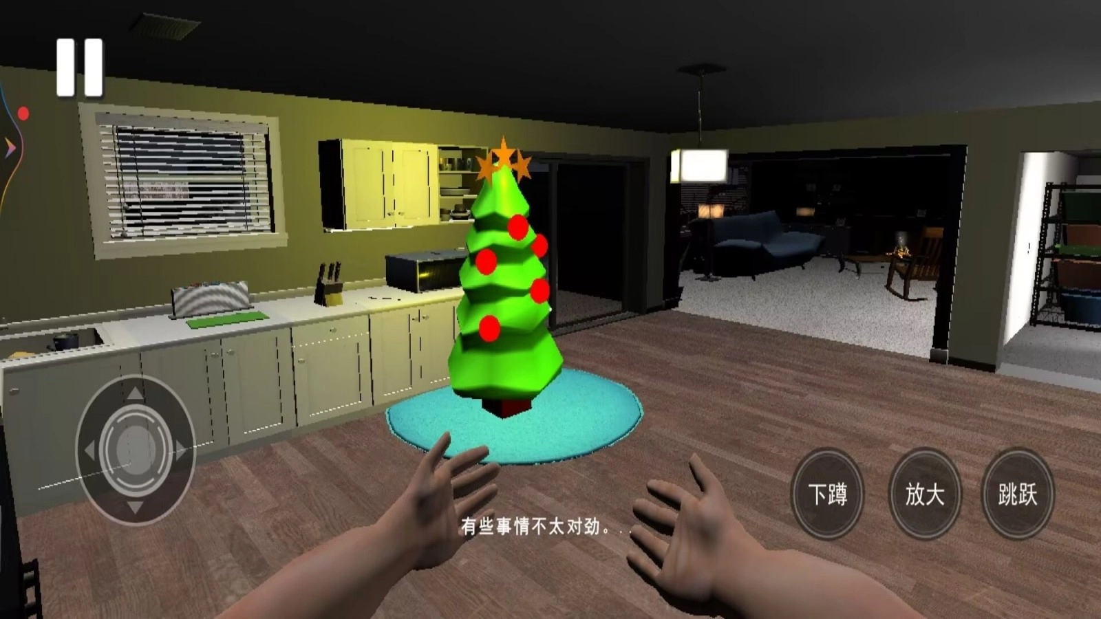 进入游戏后会播放一段开场剧情,玩家需在剧情里明确任务。接下来你要探索房间,找到五件装饰物并把它们挂到圣诞树上。