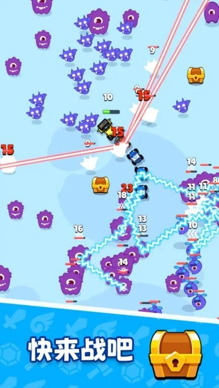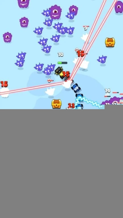 3、正式开始后点击屏幕可以控制车队移动,其他车辆会自动攻击出现的怪物。