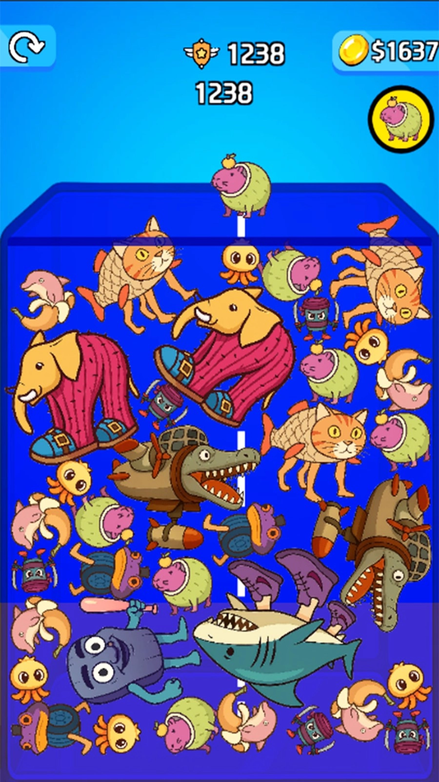 合成进阶系统:动物能进行无限次的合并进化,以此解锁全新的形态与能力,确保游戏的可持续性和惊喜体验。