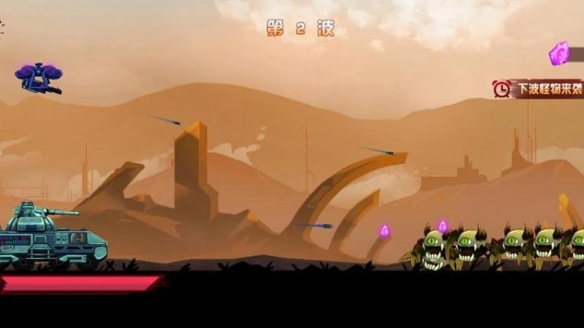 1、游戏采用关卡制设计,玩家需要操控战车,抵挡一波接一波怪物的攻击。