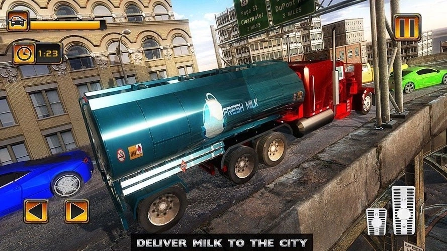 1、在越野货车停车场这类场景里,你得充当燃油、牛奶和汽车的运输商,推动运油船提升速度。