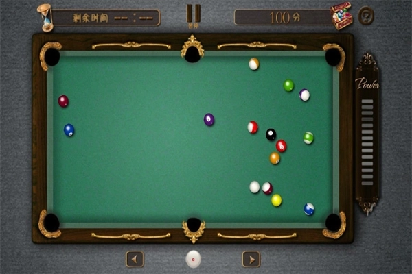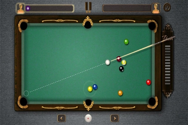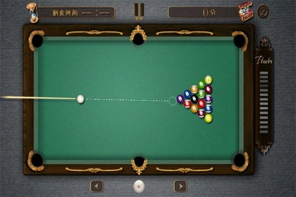 这场比赛采用8球打法,总共有8个球,你可以通过点击屏幕来移动球杆并调整击球角度。