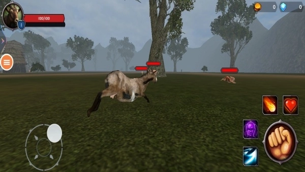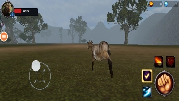 1、进入游戏后,通过虚拟摇杆操控山羊移动,先把撞击、跳跃这些基础操作练熟,这样能防止因为操作不熟练而漏掉场景里的隐藏道具。