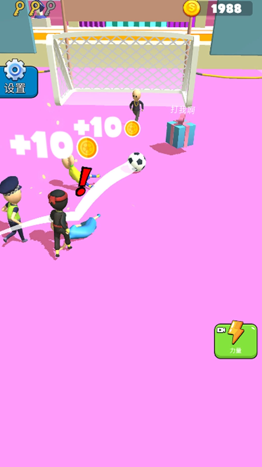 3.在关卡里,玩家的任务是让足球顺利踢进球门。为了达成这个目标,你得成功躲开所有对手,只要射门成功就能通过这一关卡。