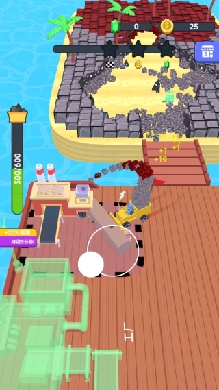2、操控拖车粉碎各类岩石,高效收集散落的矿物资源,依据岩石硬度调整采集方式,逐步积累基础资源。