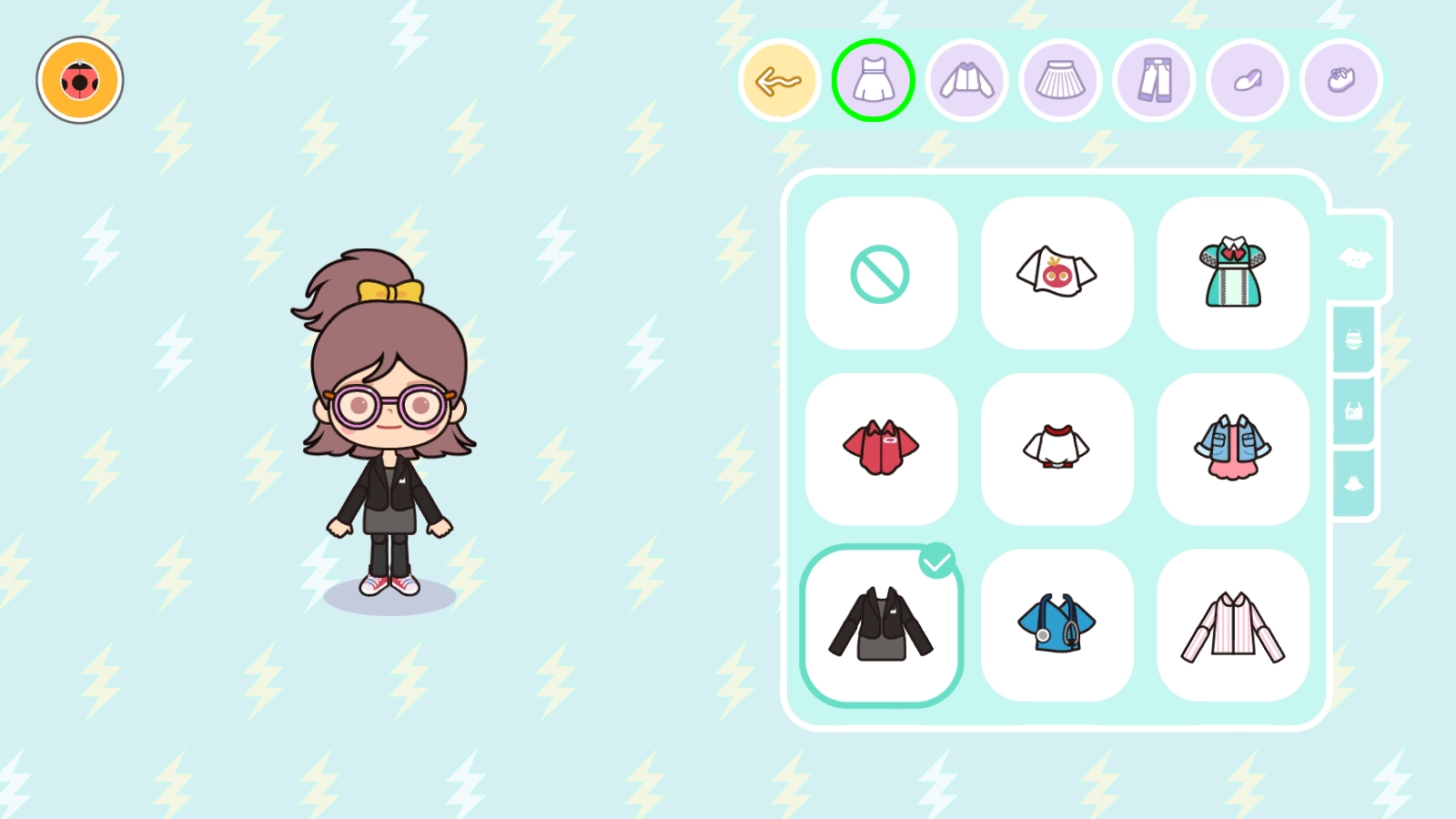 选中角色后即可进行设计,还能为其搭配各类服装或装饰品,设计完成后点击左上角的瓢虫图标保存就可以了。