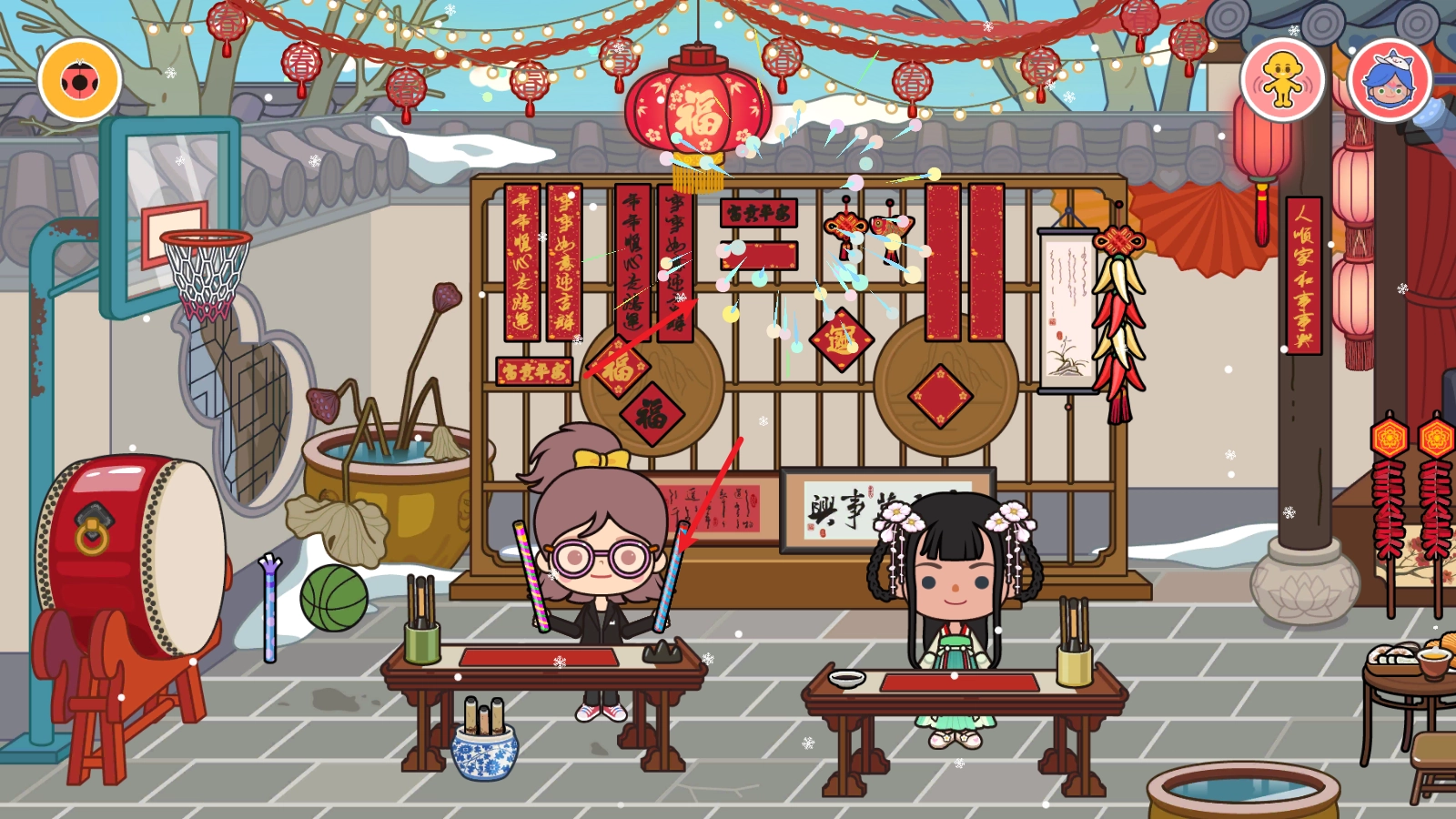 还能够让角色拿起场景中的烟花,一起放烟花呢。