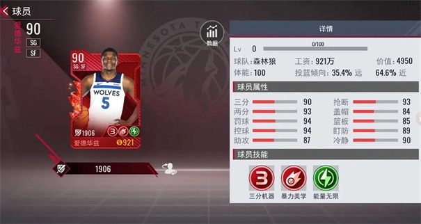 新手创号确定好核心后,会有随机另外4个球员,这个时候先别急着确定阵容,多换一换,会有很多低薪资的优质潜力球员,比如紫卡的火箭史密斯就很不错,我觉得后期上橙卡的机会很大。当然,每个人眼光不同,多换一换就对啦~