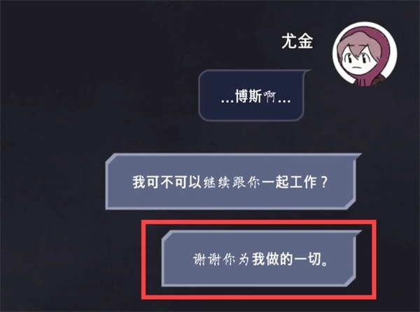 “如果你想还我人情的话,那到达目的地后你就得听我的”√(必选,如果选第二个选项,无论后面选什么都会是“博斯”杀死“尤金”的第五结局,然后“尤金”重生。)