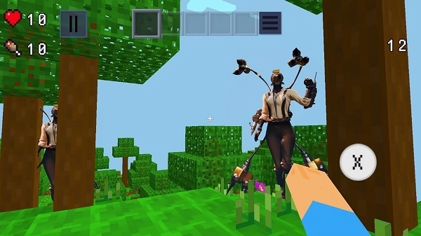 游戏里的建筑物全是像素效果,用各种像素方块搭建出不同建筑,武器也呈现出像素风格。