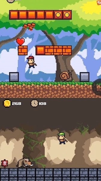 这是一款经典的横版动作冒险游戏,精彩的冒险模式等待您来体验。玩家能在关卡场景里收集更多道具,还能获取大量积分。记得避开那些危险的机关哦。